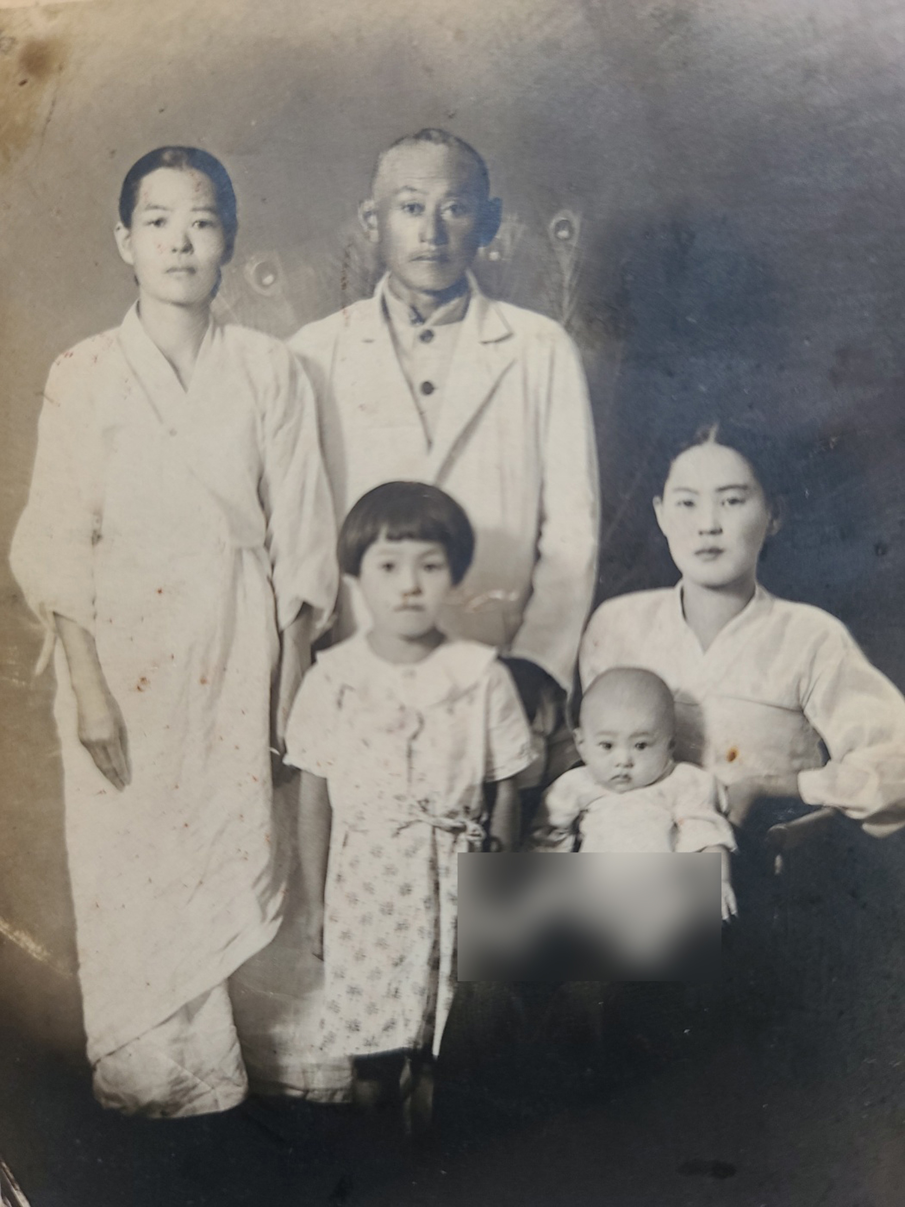 아기를 안고 계신 어머니 한 분만 선택하여 영정사진으로 복원한 작업입니다.