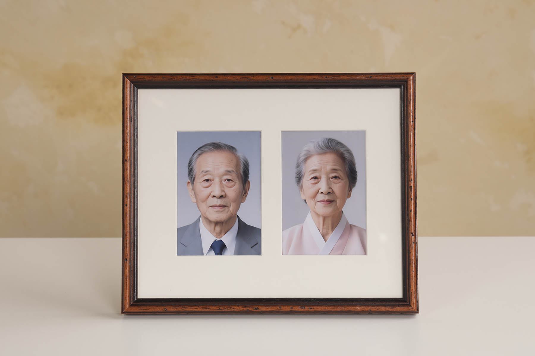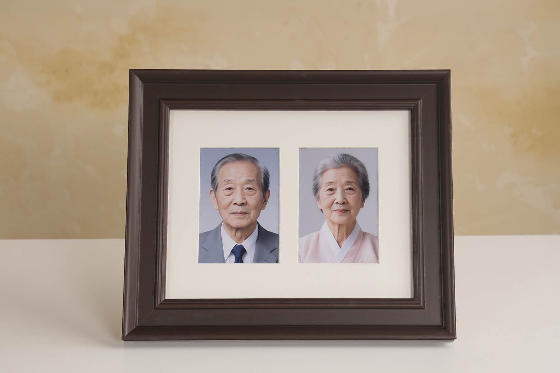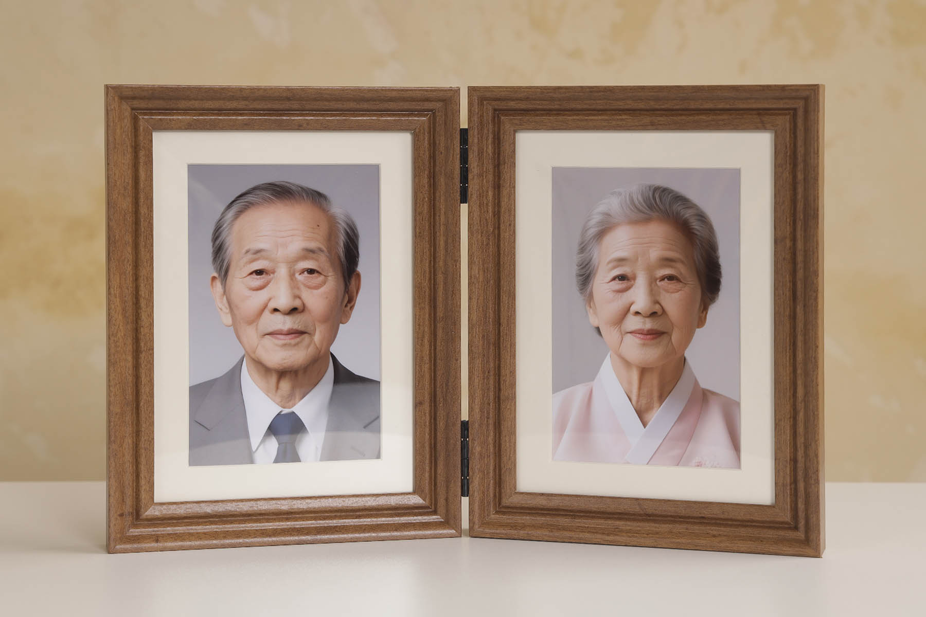 두 분의 사진을 한 액자에 함께 구성하거나 같은 디자인의 액자를 한 쌍으로 제작하여